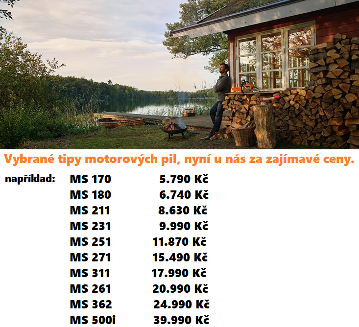 Zahřejte se s novou pilou STIHL 3. 1. 2023 Pořiďte si novou pilu STIHL, nyní u nás za zajímavé ceny. Od 1.1. – 28.2.2023. Více informací najdete zde.
